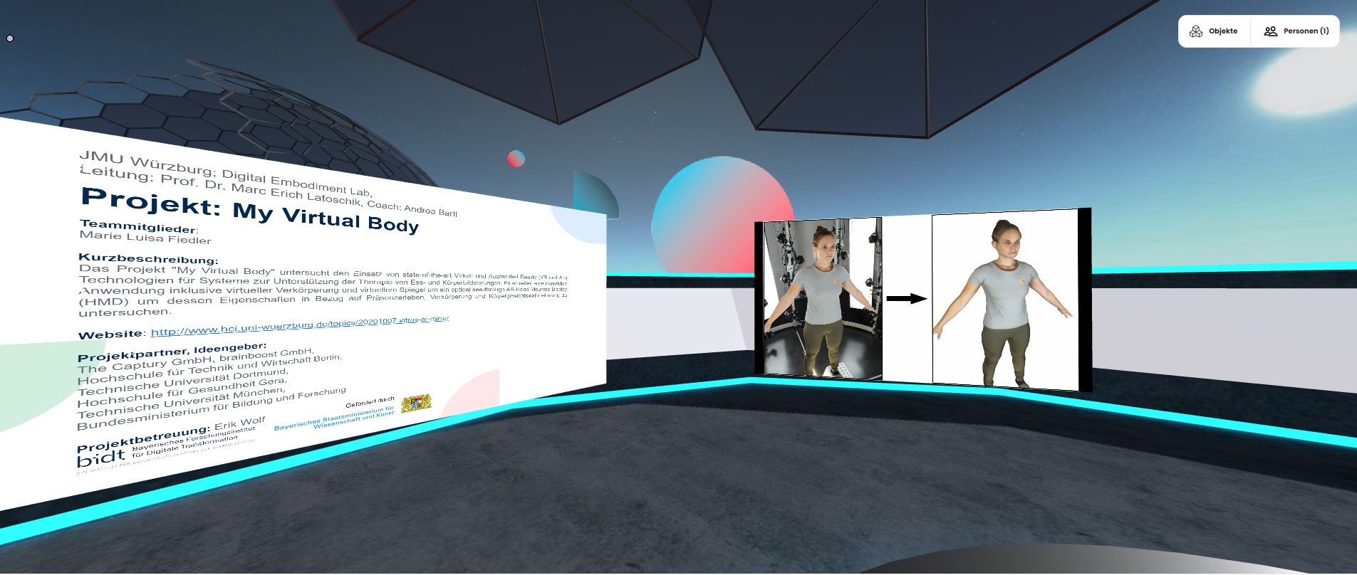 In den virtuellen Ausstellungsräumen des XR HUB Bavaria erhielten die Teilnehmenden die Möglichkeit, sich vertieft über die Projekte der einzelnen Innovationslabore zu informieren. Dabei konnten offene Fragen zur Förderlinie geklärt und Kontakte zu den Projektleitern geknüpft werden.
